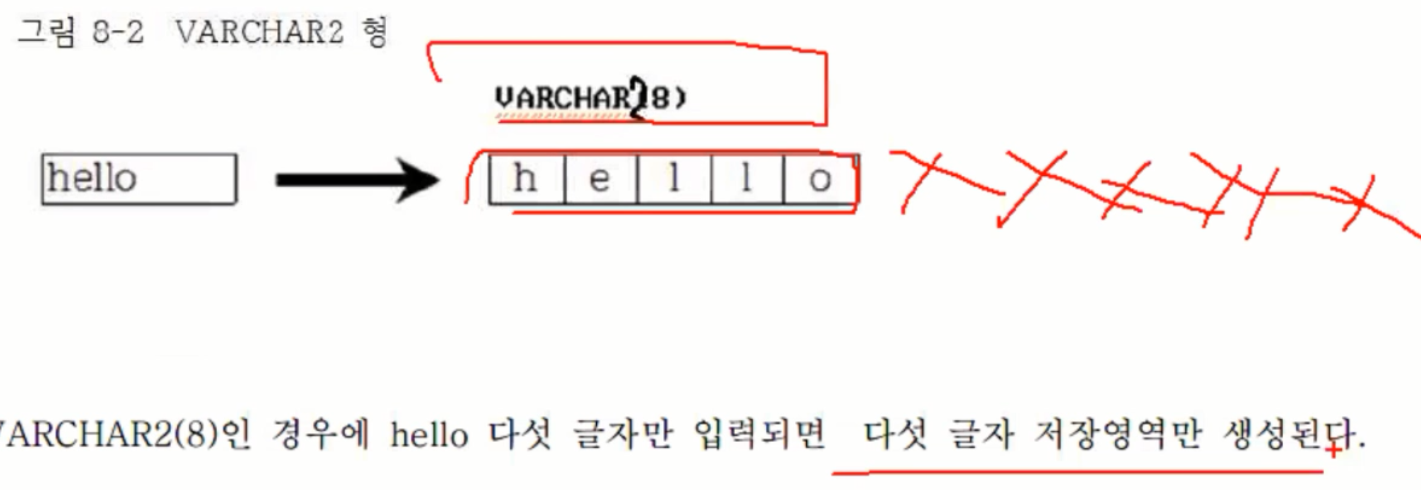 | VARCHAR2 | 가변길이 |