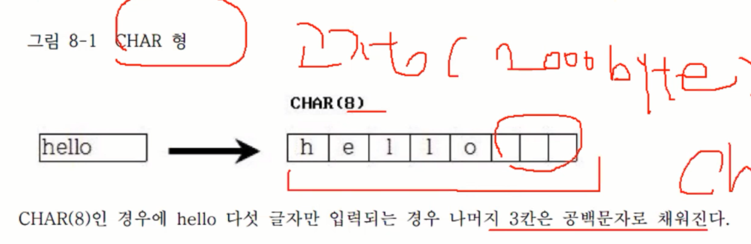 | CHAR(size) | 고정길이 |