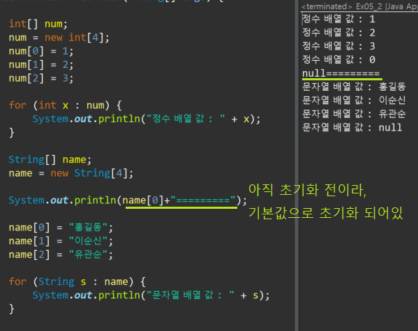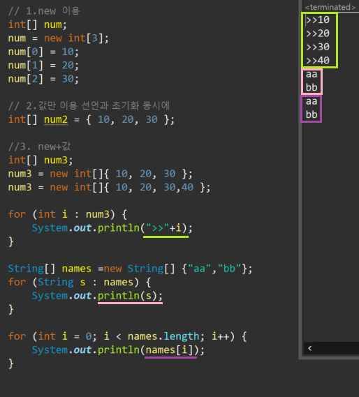 ① new 키워드 사용 - 지정된 크기만큼 [배열선언&배열생성] 필수!! &배열초기화