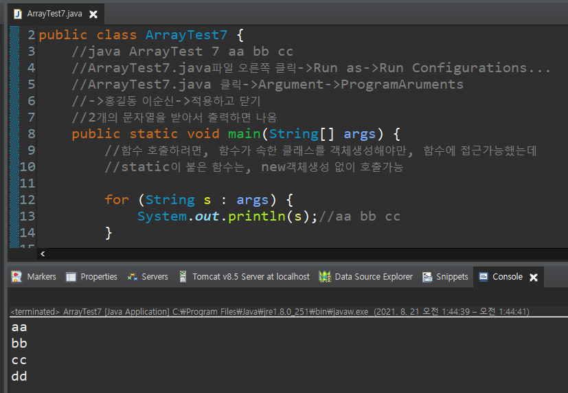 //ArrayTest7.java파일 오른쪽 클릭->Run as->Run Configurations...