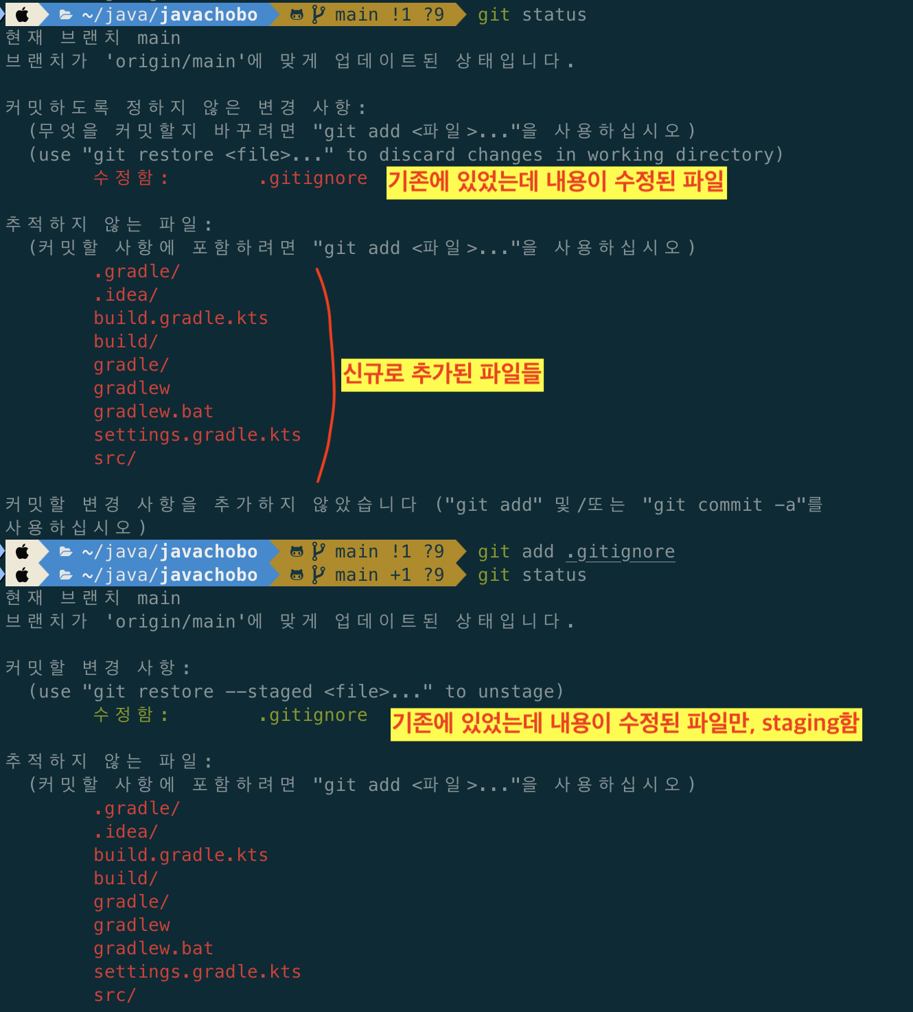 - git add 되거나 안된 파일 확인
