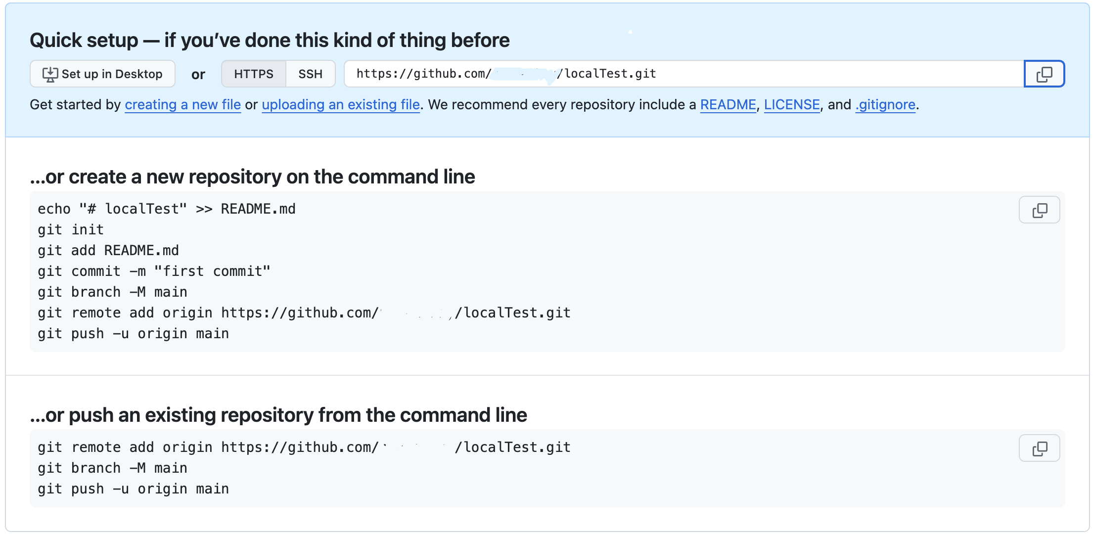 * github.com에 README.md 체크 없이 생성하면 아래 처럼 커맨드를 알려줌