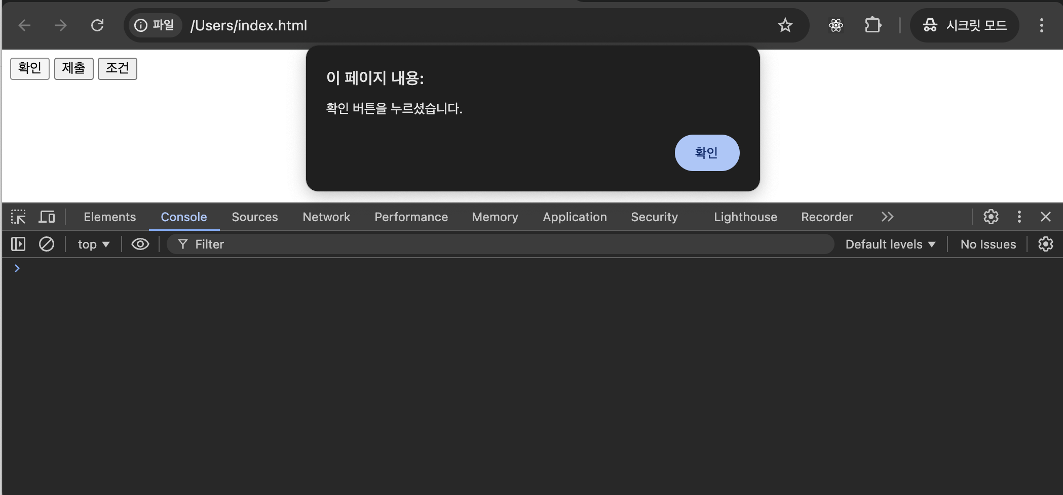 alert("확인 버튼을 누르셨습니다.")