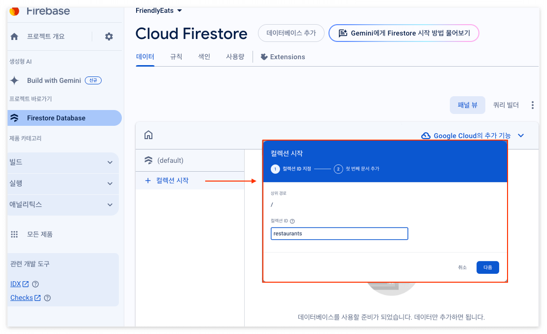 컬렉션 시작 \ 컬렉션 ID : restaurants