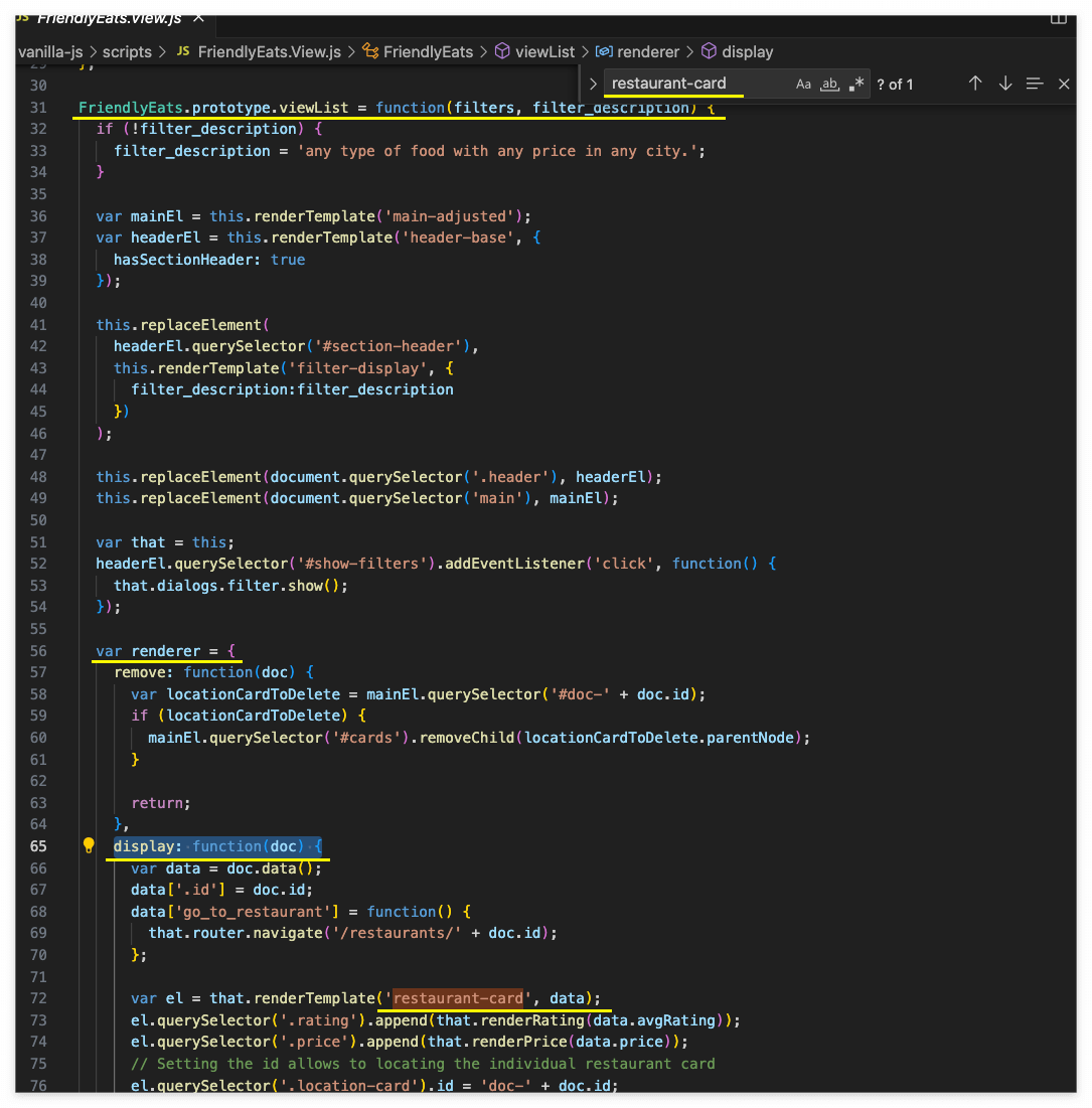 ▶︎ script \ FirendlyEats.View.js \ FriendlyEats.prototype.viewRestaurant