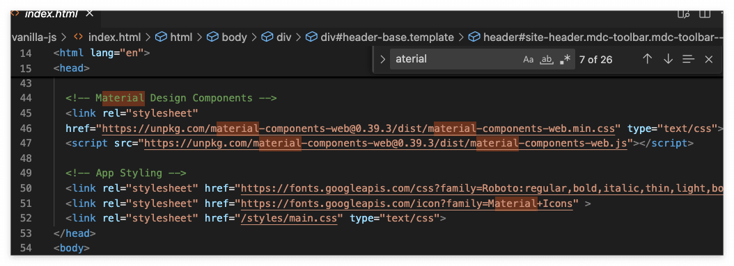 그럼 vs code 의 index.html 에서 찾는다.