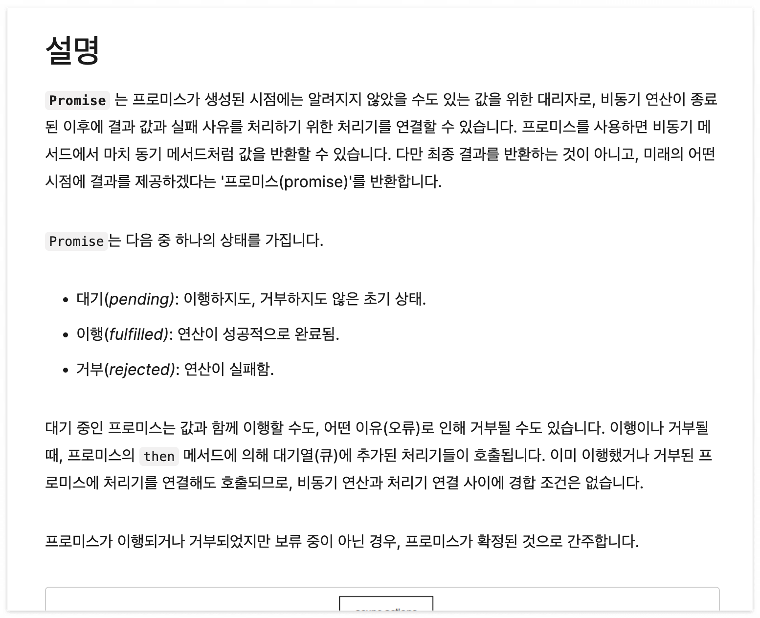 * 여기서 promise는 눈치챘겠지만