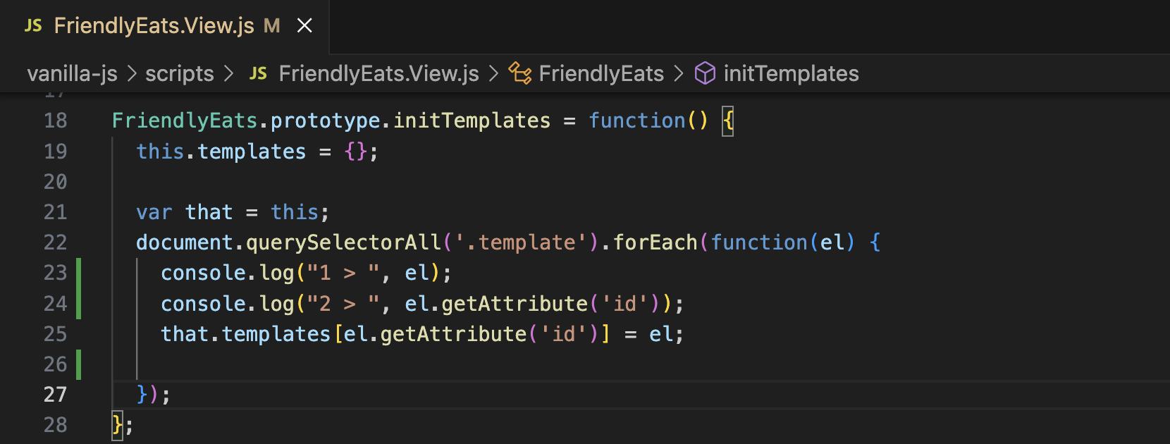 ▶︎ script \ FirendlyEats.View.js \ function initTemplates() 생성