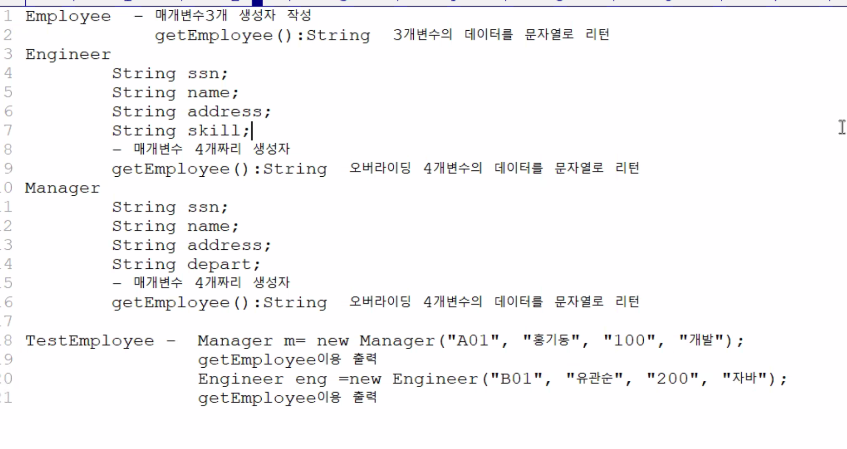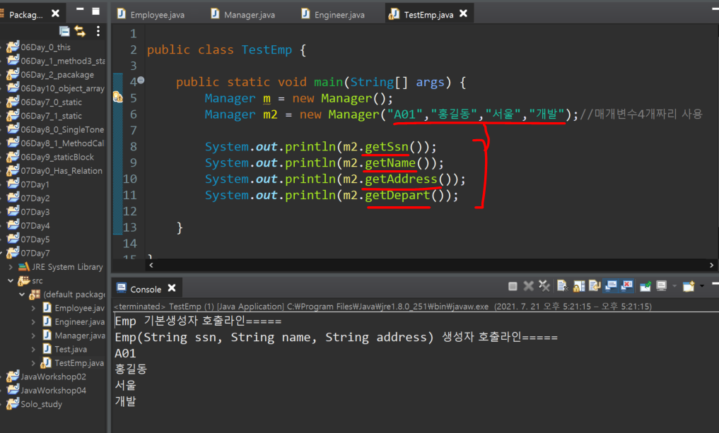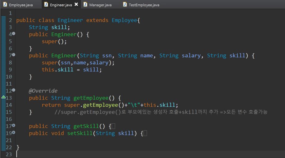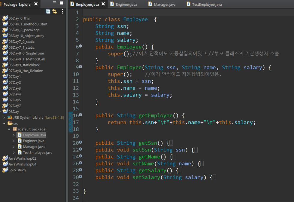 ㄴ super(sssn, name, address)는 기존에 Employee로 상속받아서 있던 변수들이고,