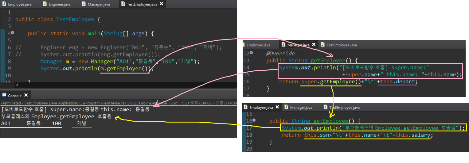 ㄴ@Override 붙어있으면, 아 이 함수 부모에도 있는 함수구나 라고 알기만 하면 됨