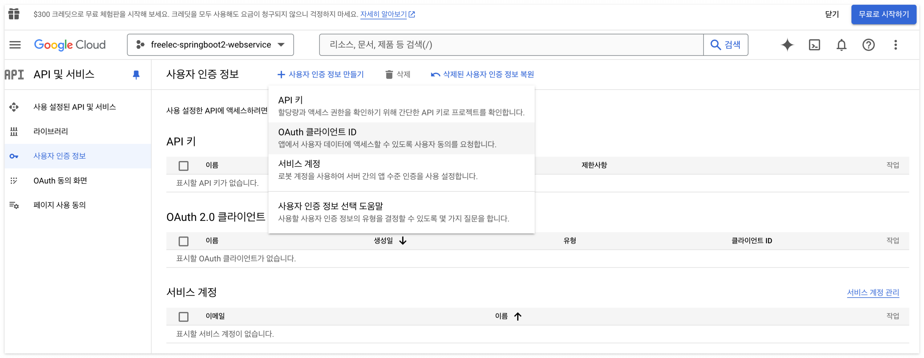다시 '사용자 인증 정보 - OAuth 클라이언트 ID' 선택.