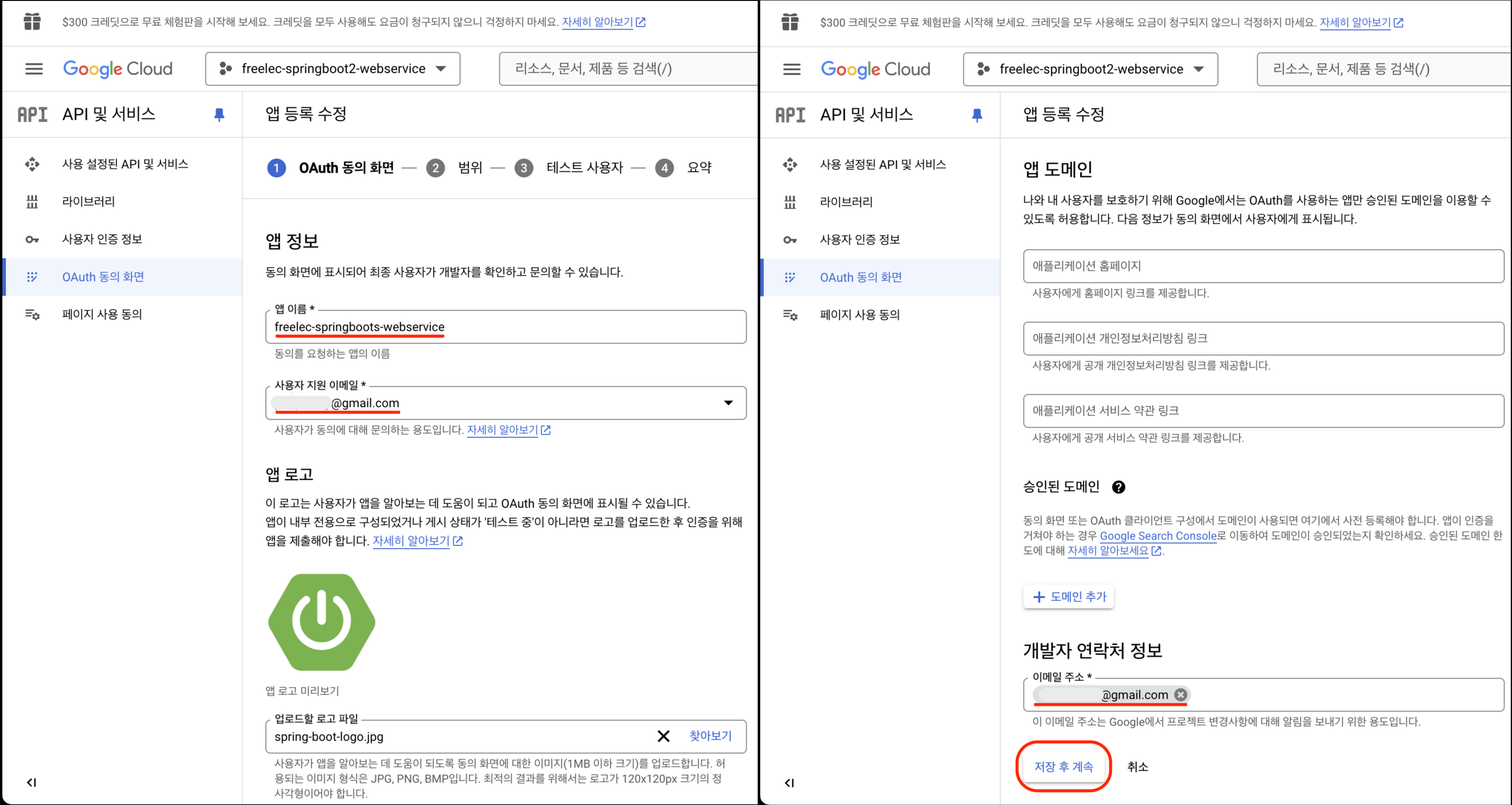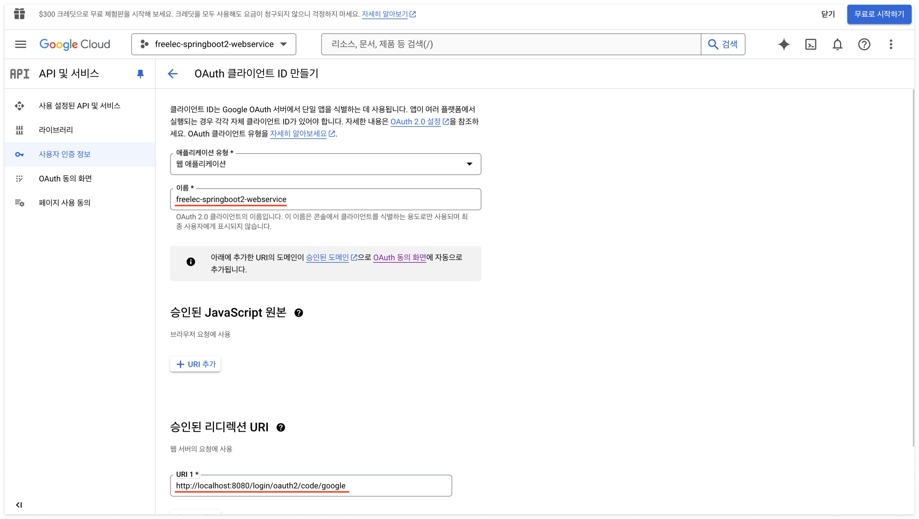 승인된 리디렉션 URI : http://localhost:8080/login/oauth2/code/google