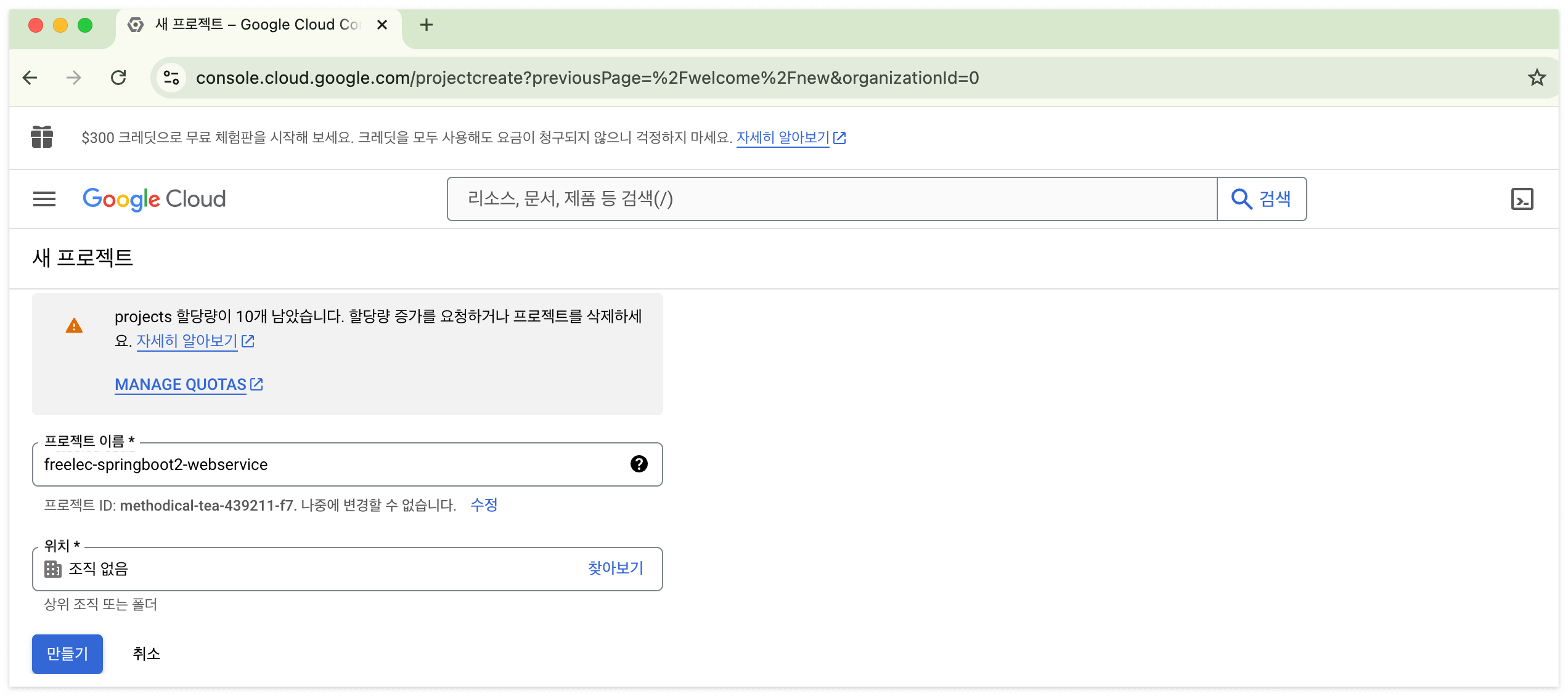 구글 클라우드 프로젝트 생성