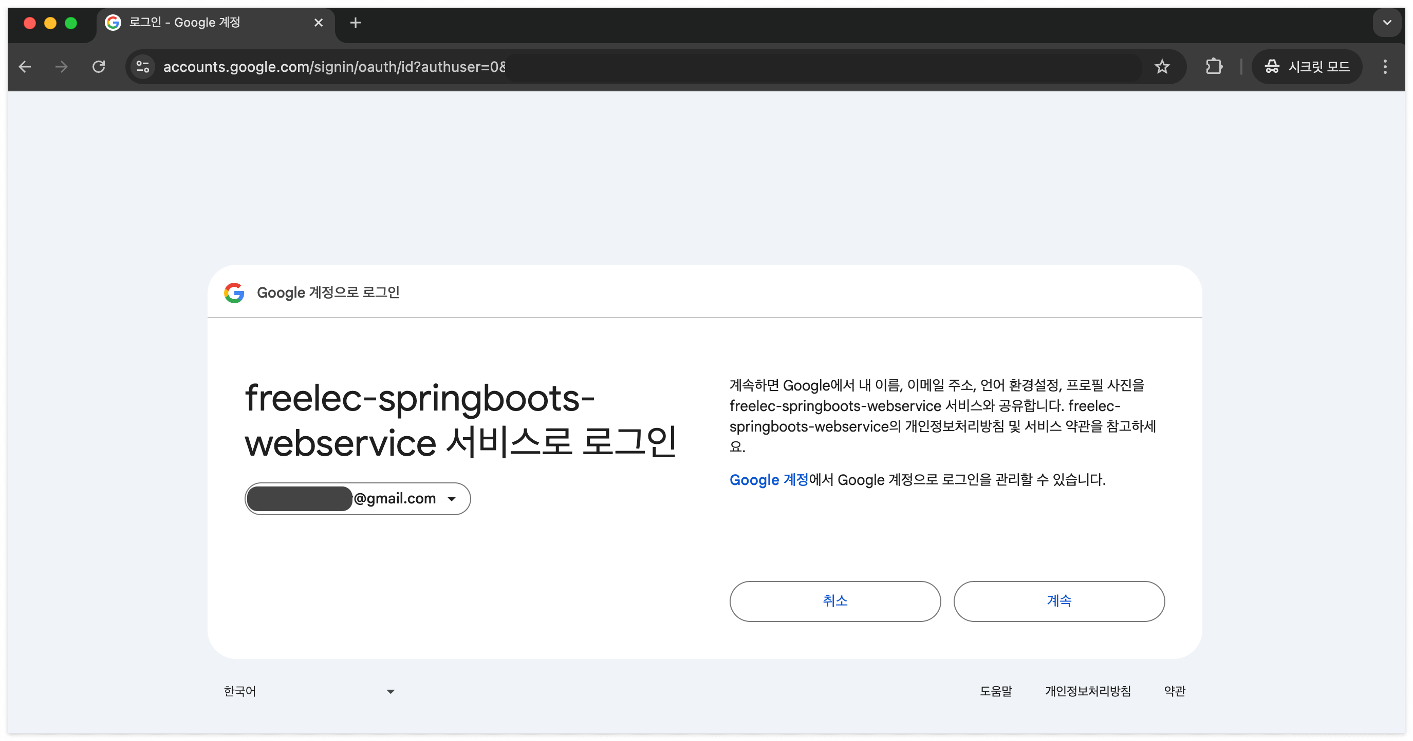 로그아웃 하고 다시 'Google Login' 하면 따로 묻지 않는 이유는 (서버 죽이면 안됨!)