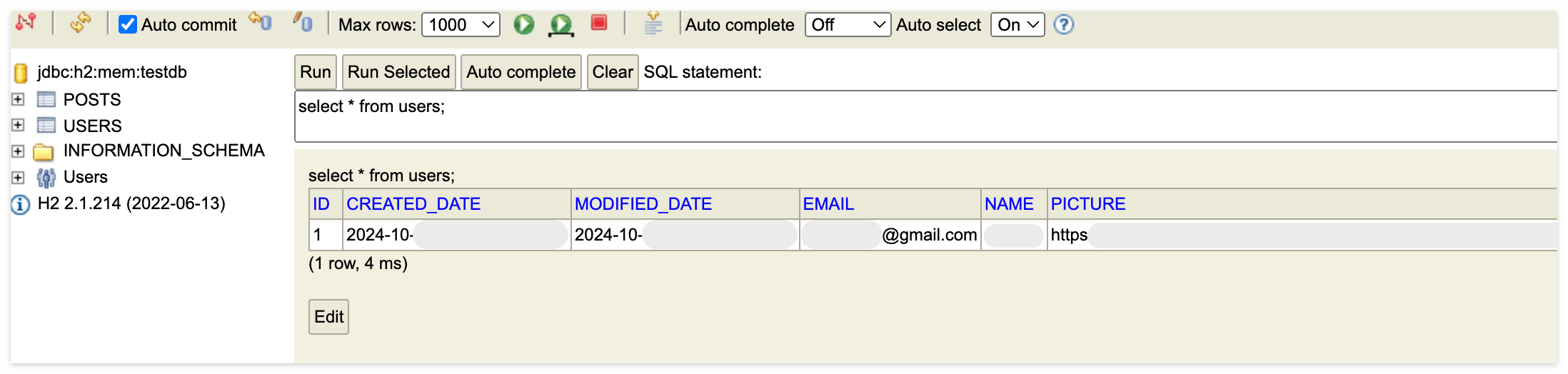 맨처음 'Google Login' 하면서 h2 의 Users 테이블에도 저장했기 때문이다.