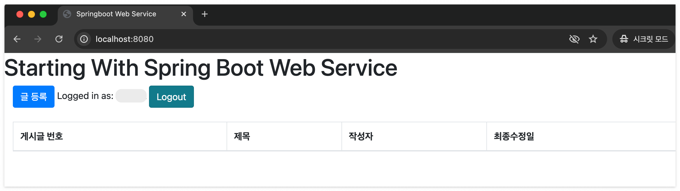 물론 서버를 Stop 하면 초기화되는 h2이기 때문에 재로그인해야할 것이다.