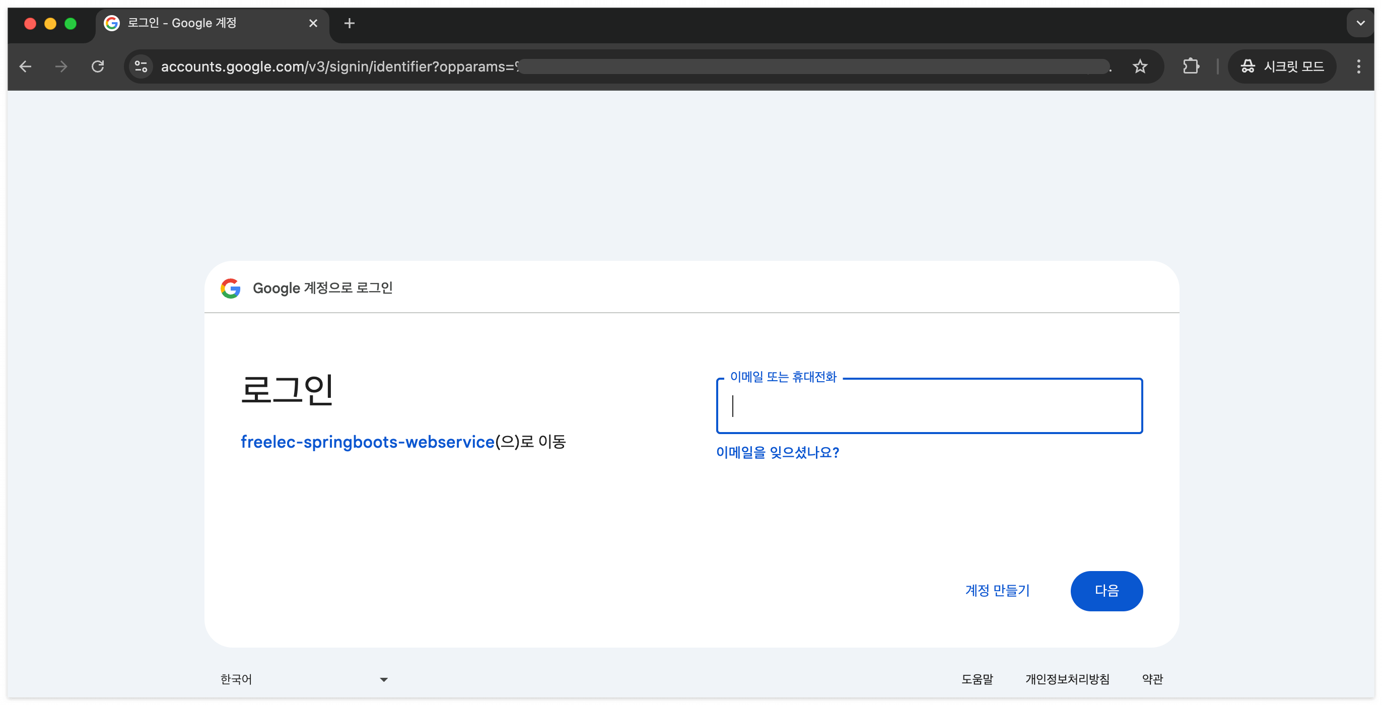 으엑; <a href="/oauth/authorization/google" 로 적어도 로그인까진 정상 동작되는데 redirect에서 오류가 나는거였다.
