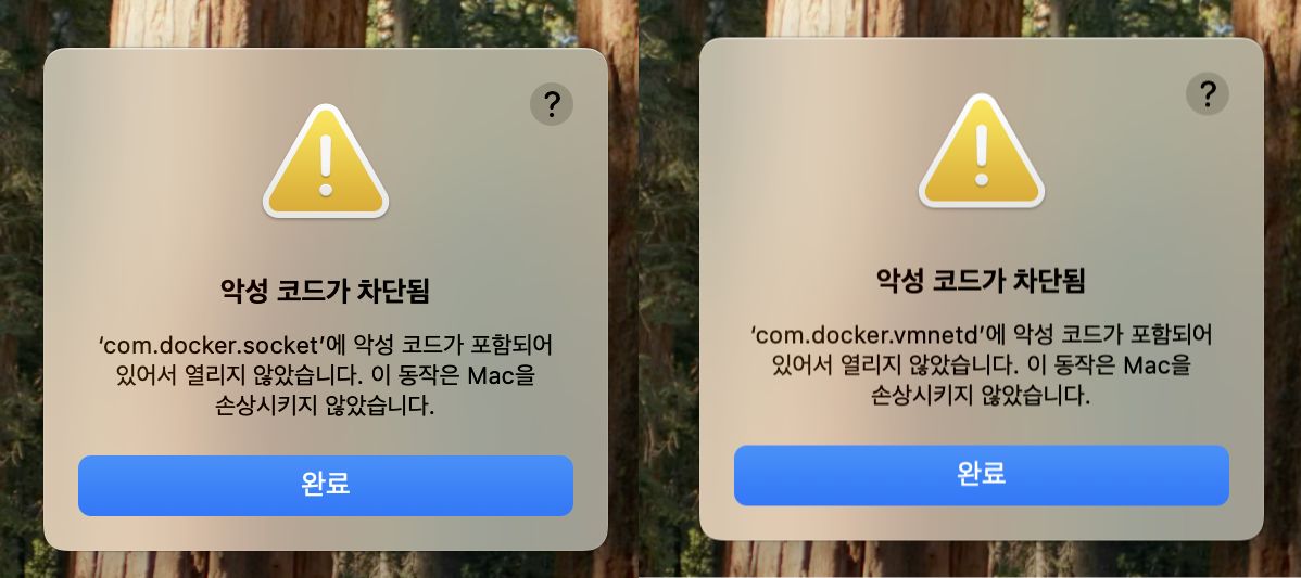 'com.docker.vmnetd'에 악성 코드가 포함되어 있어서 열리지 않았습니다. 이 동작은 Mac을 손상시키지 않았습니다.