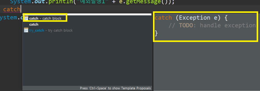 예외처리코드 ③ // 이렇게 할거임. 보통 출력문