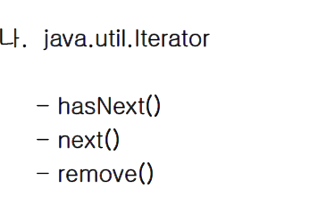 -Iterator함수 : hasNext(), next(), ,remove()