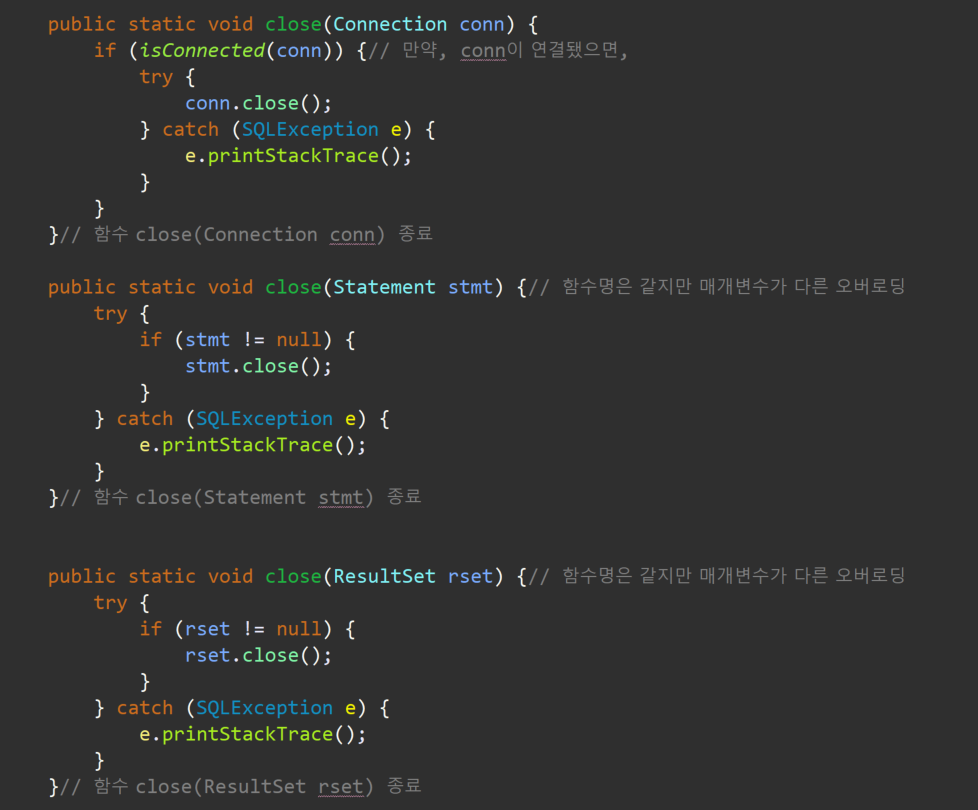 // 지금까지 connection이 not null이면 close했는데, 좀더 디테일하게,