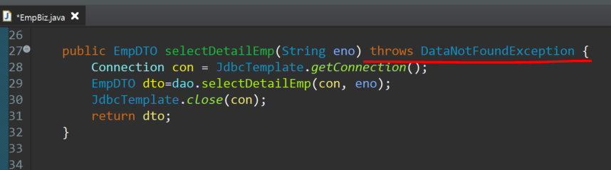 Biz 클래스에서 JdbcTemplate를 쓸때 패키지import 되어있는게 아니고