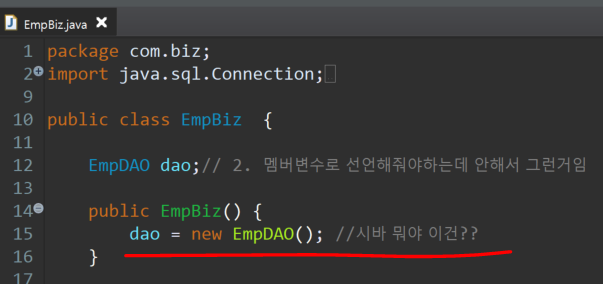 EmpBiz empBiz = new EmpBiz(); //EmpBiz는 EmpDAO 사용할거고,