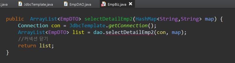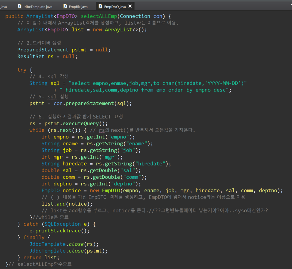 함수생성 : public ArrayList<EmpDTO> selectALLEmp(Connection con) {