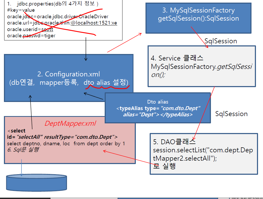 -4가지정보properties랑, sql문 있는 Mapper까지 품고 있고, SessionFactory가 그걸 읽음