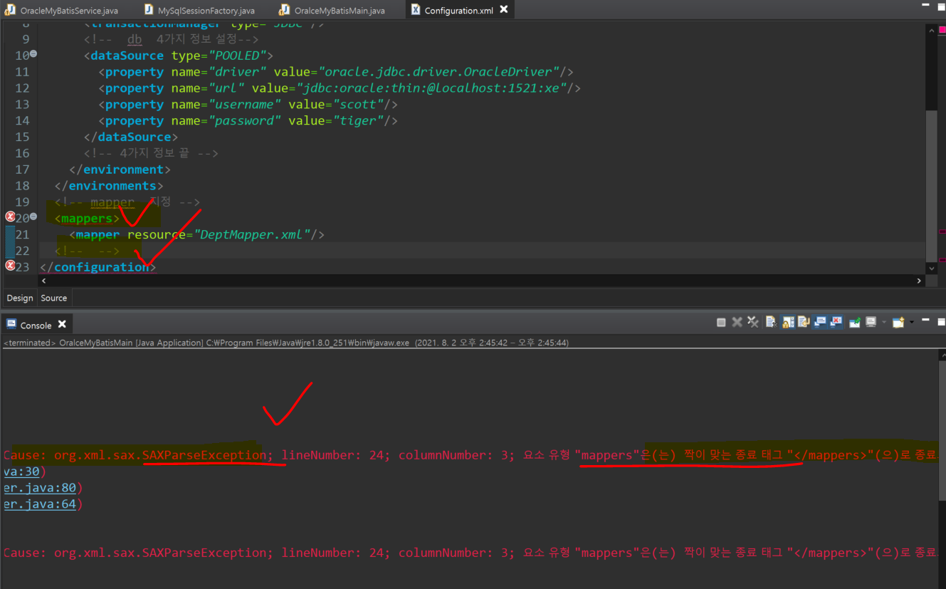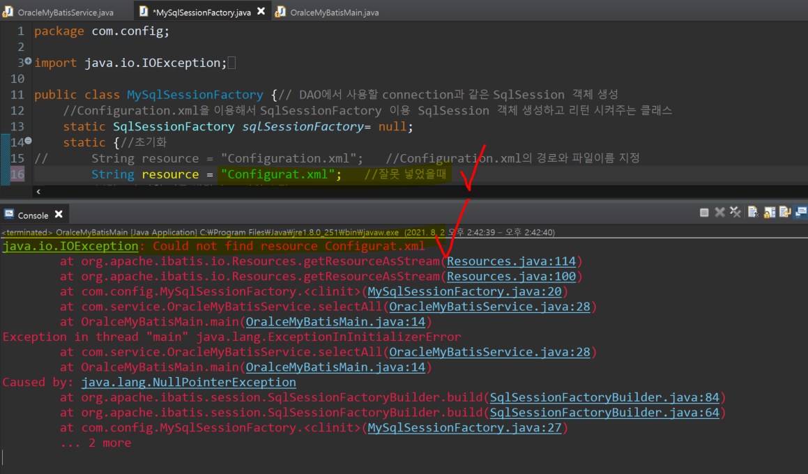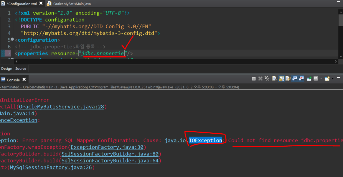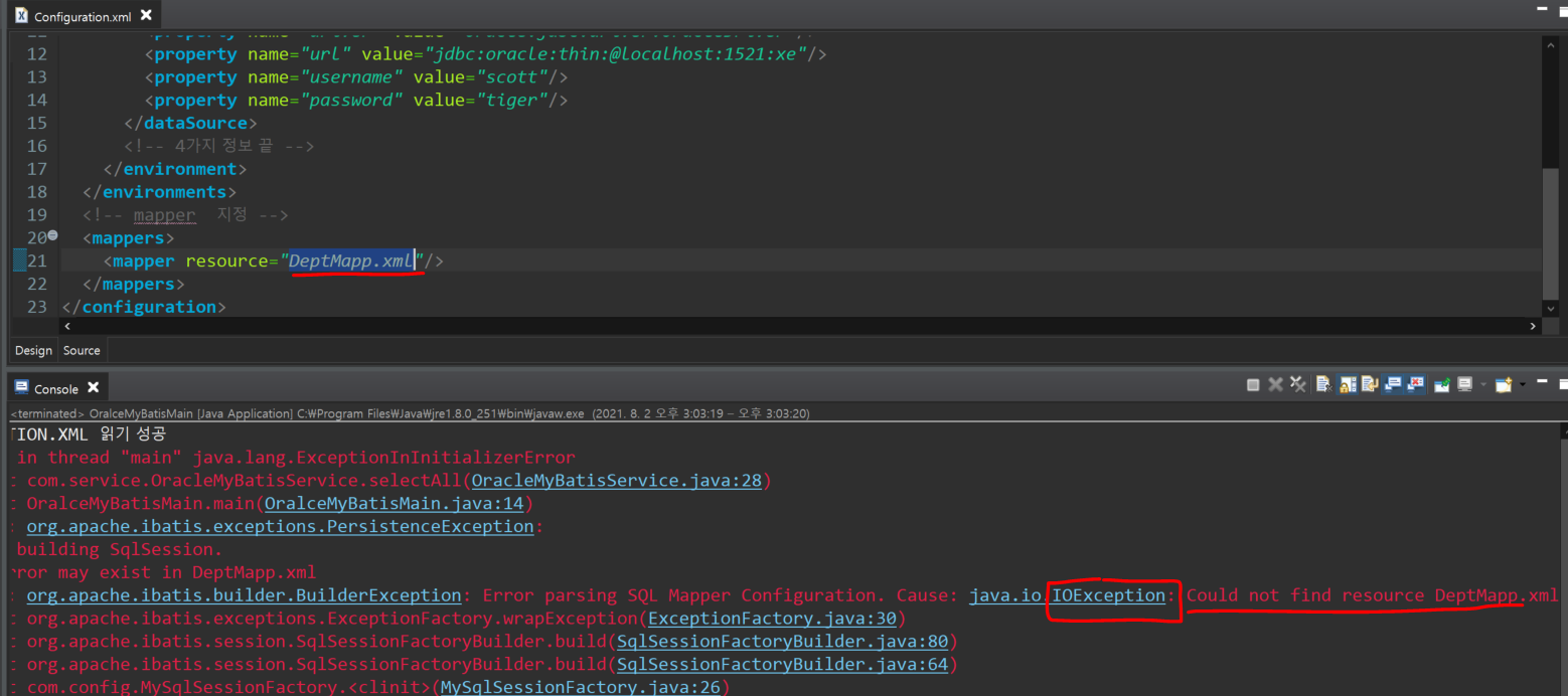 2. configuration.xml안에서 resource="Mapper.xml"를 잘못 썻을때