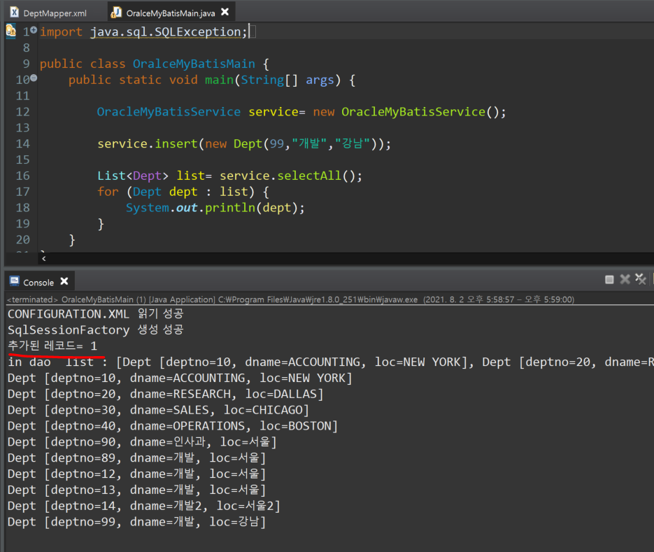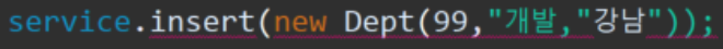 dao.insert(session랑 같이, main이 줬던 값 dept) ; <=== DAO클래스의 insert함수 부르고,