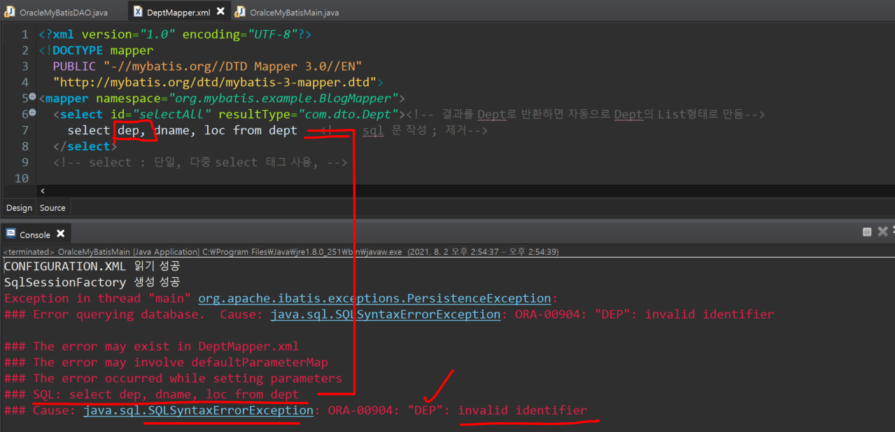ㄴMapper의 sql문