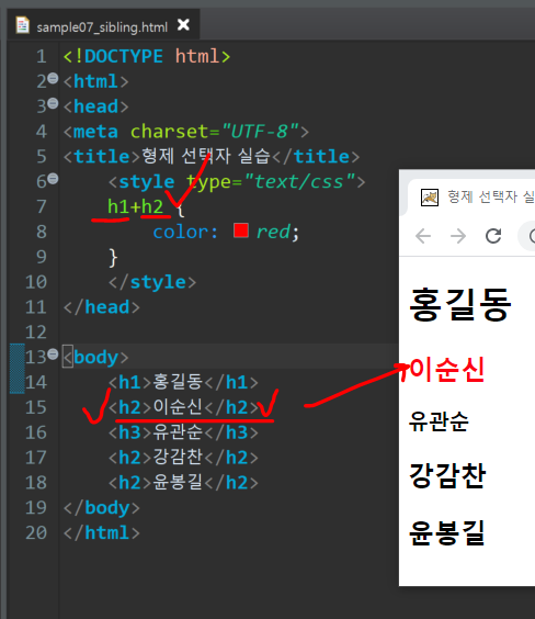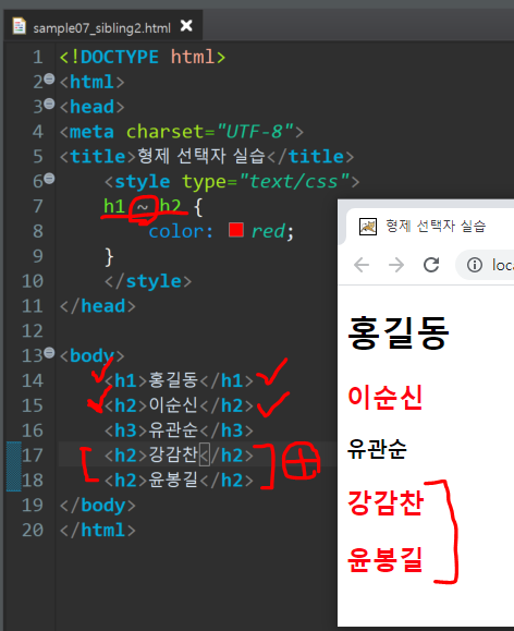 7) 인접한특정 sibling 선택자( 선택자+ 형제선택자)