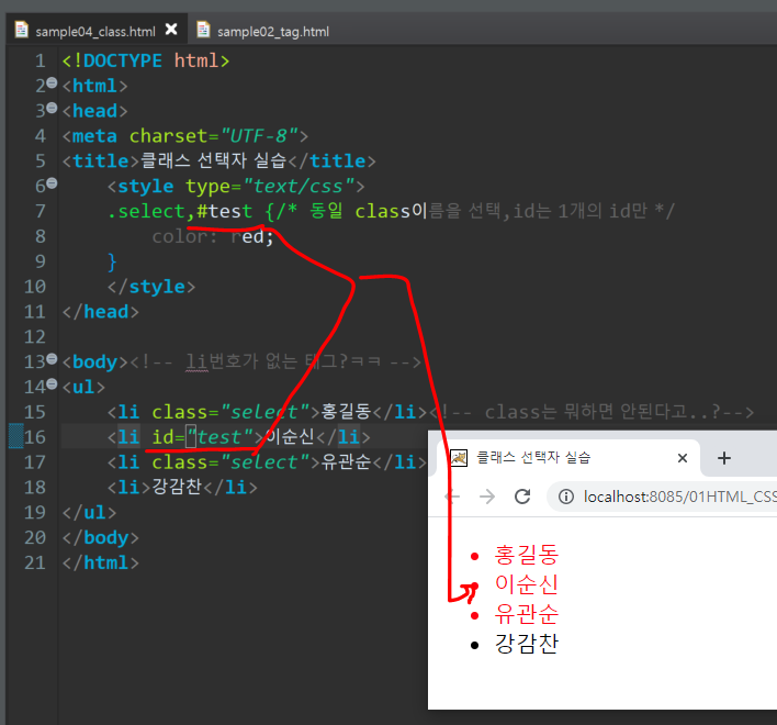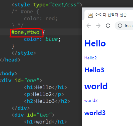 클래스 선택자와, id 선택자 쉼표로 동시사용가능