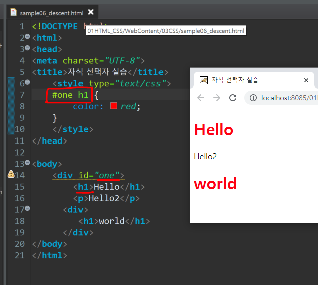 6) 자손선택자( 부모선택자자손선택자)