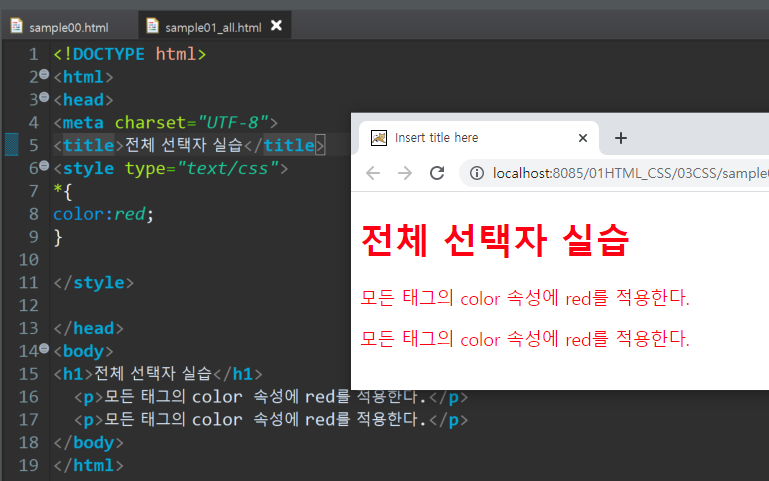 -HTML 문서안의모든태그를선택할때전체선택자를사용