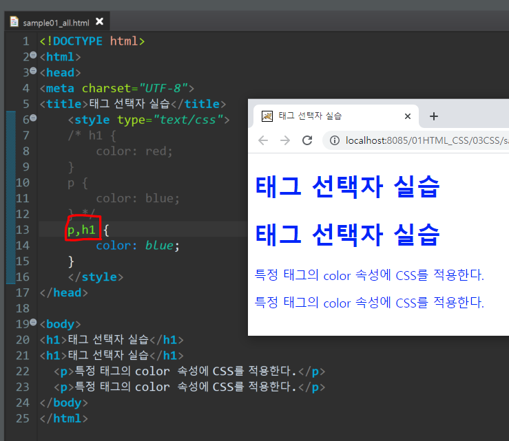 2) 태그선택자( 태그명)