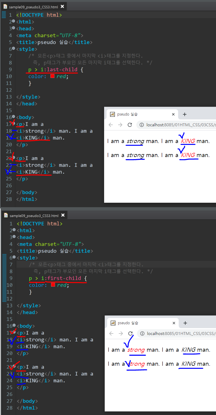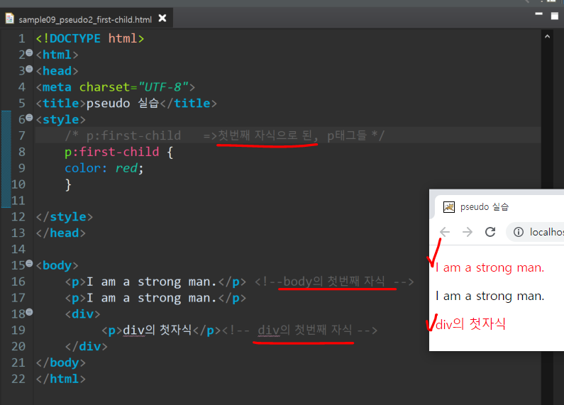 ■ p : first-child => p태그들 중에서, 첫번째에 해당하는 자식