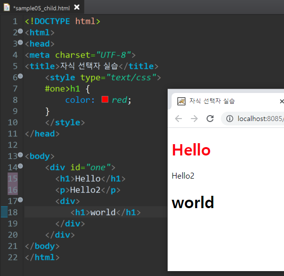 5) 자식선택자( 부모선택자> 자식선택자)