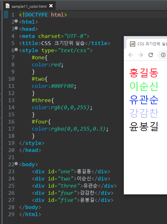 -CSS 에서사용하는기본색상단위