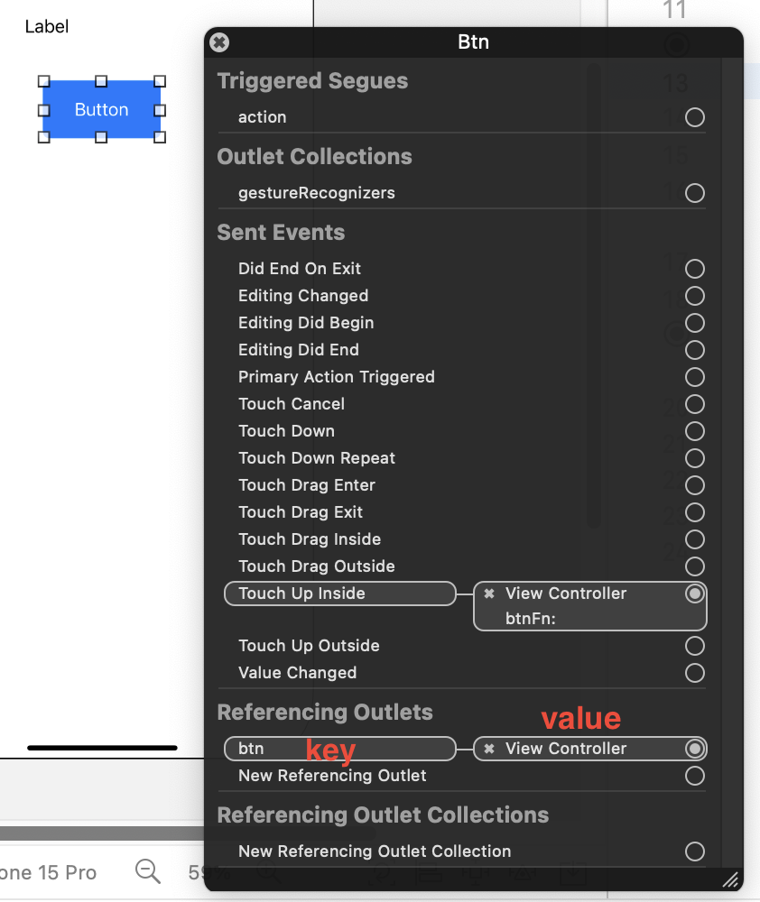 Referencing Outlets 변수명이 key, connection 뷰가 value가 된다.