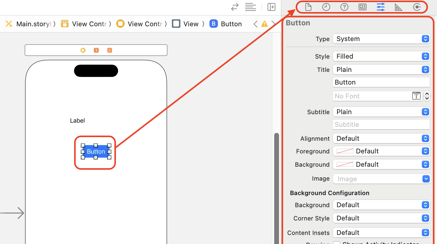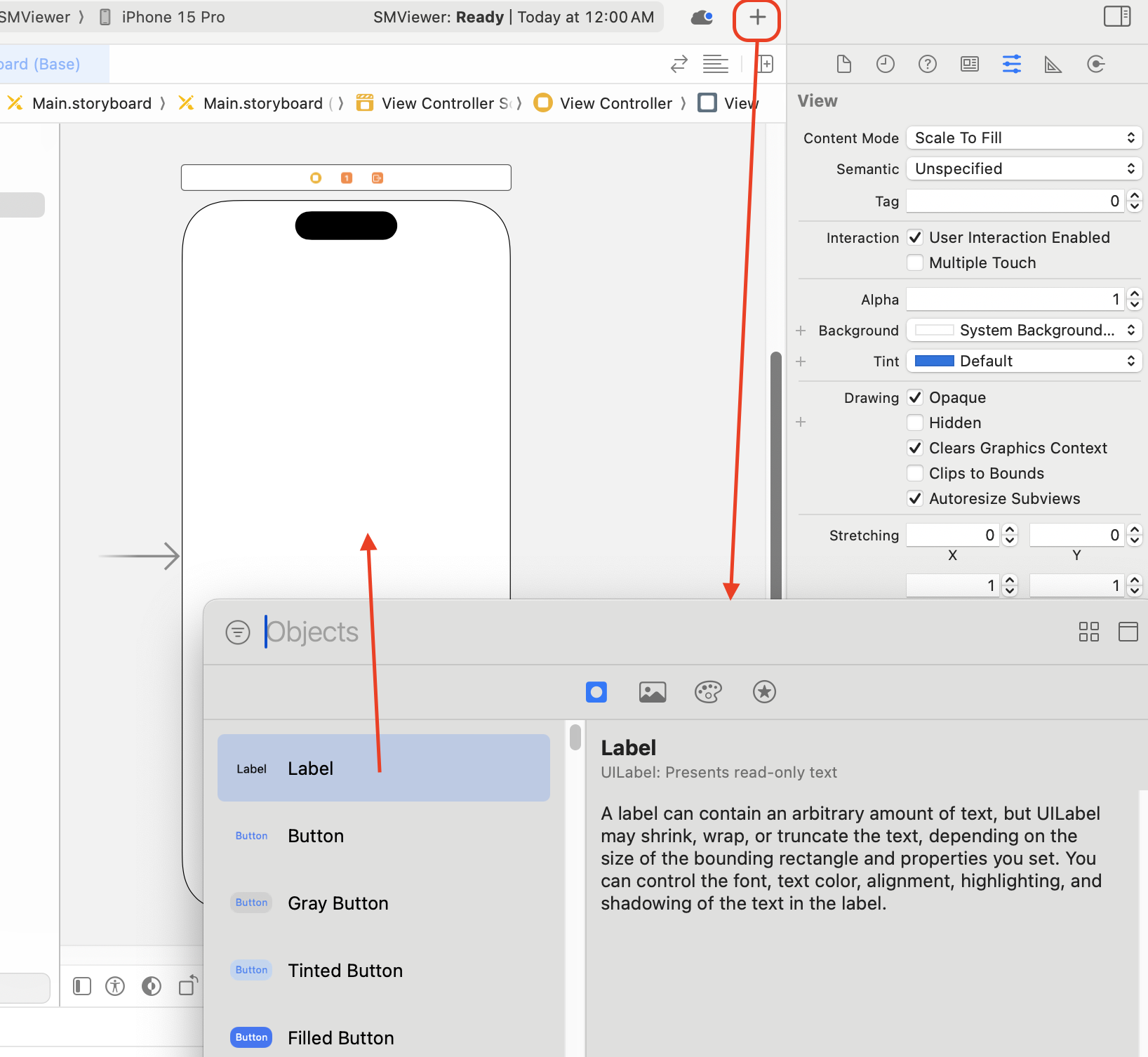 + 버튼을 누르면 Label, Button, Slider, Segmented Control, Switch, Stepper 등